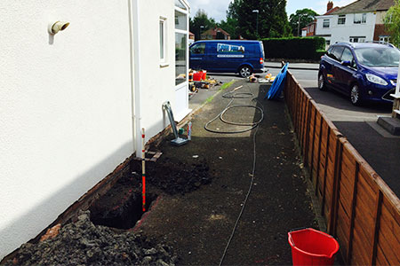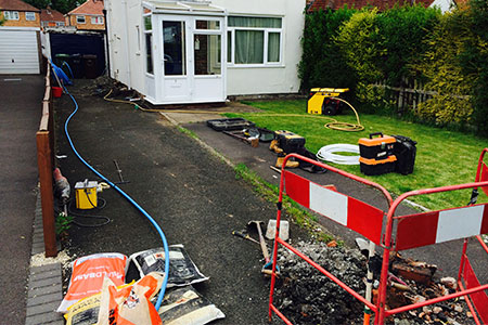 We specialise at replacing domestic underground water mains using an impact mole that drills underground between launch pits leaving the top surface undisturbed saving time, money and disturbance with less impact on the environment.